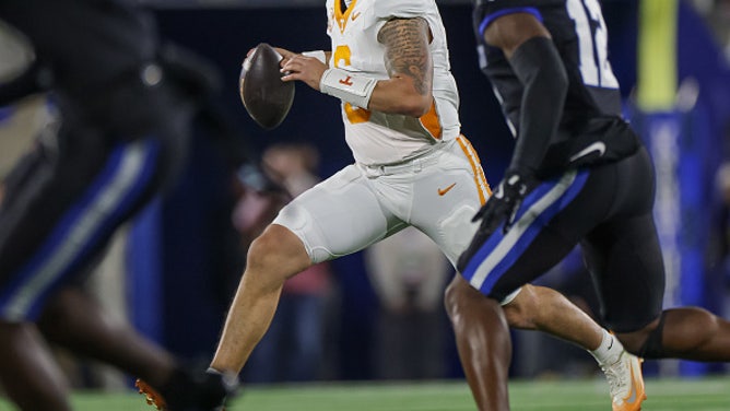 LEXINGTON, KENTUCKY - OCTOBER 25: Joey Aguilar #6 of the Tennessee Volunteers looks to throw the ball during the first half of the NCAA football game Kentucky Wildcats vs Tennessee Volunteers at Kroger Field on October 25, 2025 in Lexington, Kentucky. (Photo by Michael Hickey/Getty Images)