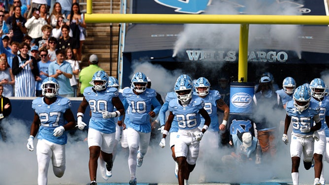 CHAPEL HILL, NORTH CAROLINA - OCTOBER 25: Players of the North Carolina Tar Heels take the field prior to the game against the Virginia Cavaliers at Kenan Memorial Stadium on October 25, 2025 in Chapel Hill, North Carolina. (Photo by Lance King/Getty Images)