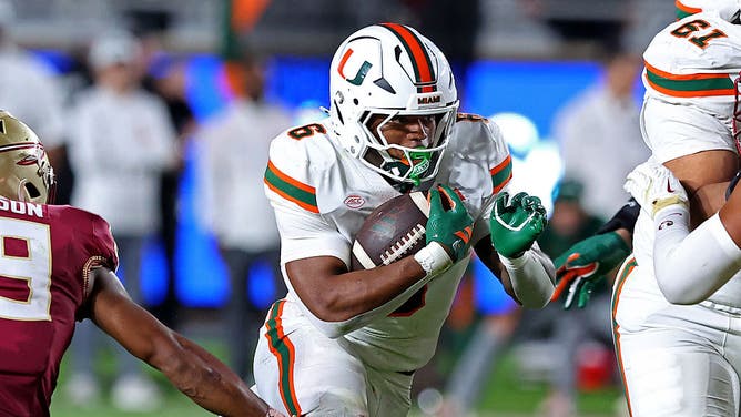 TALLAHASSEE, FLORIDA - OCTOBER 4: CharMar Brown #6 of the Miami Hurricanes rushes the ball in the fourth quarter of the game against the Florida State Seminoles at Doak S. Campbell Stadium on October 4, 2025 in Tallahassee, Florida. (Photo by Jason Clark/Getty Images)