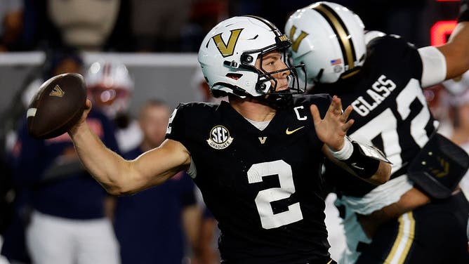 NASHVILLE, TN - NOVEMBER 08: Vanderbilt Commodores quarterback Diego Pavia #2 drops back to pass during a game between the Vanderbilt Commodores and Auburn Tigers, November 8, 2025, at FirstBank Stadium in Nashville, Tennessee. (Photo by Matthew Maxey/Icon Sportswire via Getty Images)