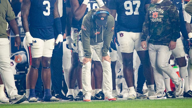 AUBURN, ALABAMA - NOVEMBER 01: Head coach Hugh Freeze of the Auburn Tigers reacts to a play during the second half of their game against the Kentucky Wildcats at Jordan-Hare Stadium on November 01, 2025 in Auburn, Alabama. (Photo by Michael Chang/Getty Images)