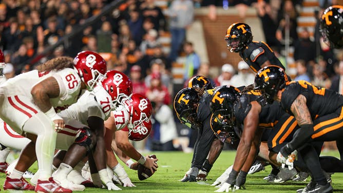 KNOXVILLE, TENNESSEE - NOVEMBER 1: Oklahoma Sooners lines up against the Tennessee Volunteers during a game between the Tennessee Volunteers and the Oklahoma Sooners at Neyland Stadium on November 1, 2025 in Knoxville, Tennessee. (Photo by Roger Wimmer/ISI Photos/ISI Photos via Getty Images)