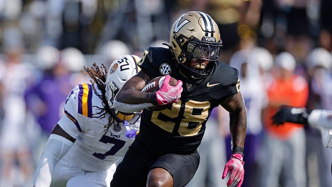NASHVILLE, TN - OCTOBER 18: Sedrick Alexander #28 of the Vanderbilt Commodores runs with the ball during a college football game against the LSU Tigers on October 18, 2025 at FirstBank Stadium in Nashville, Tennessee. (Photo by Joe Robbins/Icon Sportswire via Getty Images)