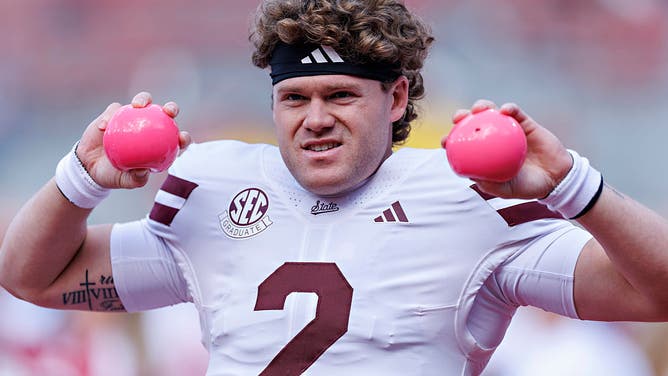 FAYETTEVILLE, ARKANSAS - NOVEMBER 01: Blake Shapen and the Mississippi State Bulldogs will look to continue their strong play at home and cover against the Georgia Bulldogs. (Photo by Wesley Hitt/Getty Images)