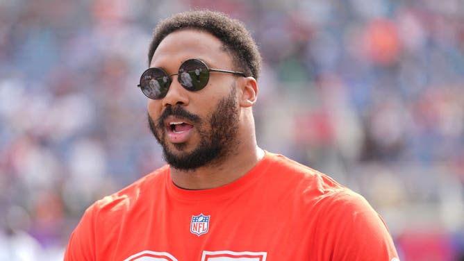 ORLANDO - Myles Garrett of the Cleveland Browns and AFC looks on prior to the 2025 NFL Pro Bowl Games at Camping World Stadium on February 2, 2025. (Photo by Perry Knotts/Getty Images)