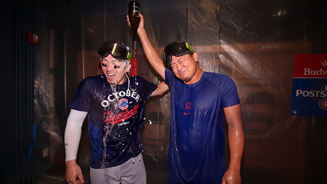 "I learned that with champagne, instead of drinking it, you should absorb it with your skin. It feels better," Imanaga said from the clubhouse celebration.