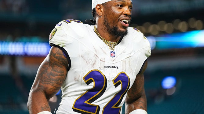 MIAMI GARDENS, FL - OCTOBER 30: Derrick Henry #22 of the Baltimore Ravens exits the field after an NFL football game against the Miami Dolphins at Hard Rock Stadium on October 30, 2025 in Miami Gardens, Florida. (Photo by Cooper Neill/Getty Images)