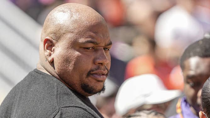 Former Clemson football defensive player Dexter Lawrence during the first half at the annnual Clemson Orange and White spring game at Memorial Stadium in Clemson, South Carolina Saturday, March 28, 2026.