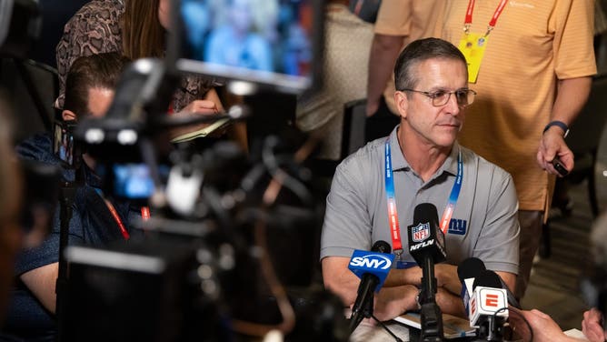 Mar 30, 2026; Phoenix, AZ, USA; New York Giants head coach John Harbaugh during the 2026 NFL Annual League Meeting at the Arizona Biltmore. Mandatory Credit: Mark J. Rebilas-Imagn Images
