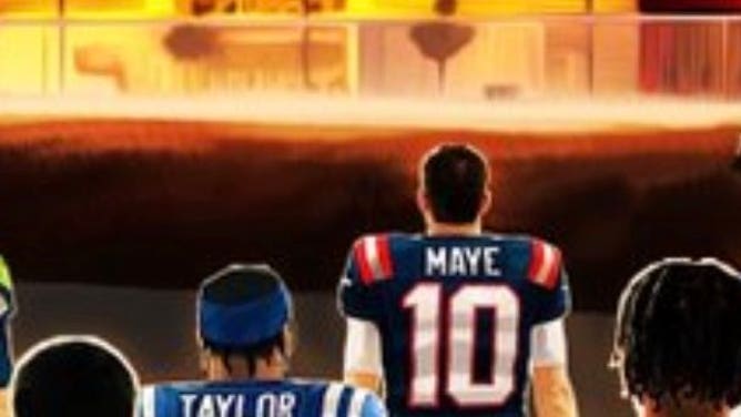 That is not a doctored image. The NFL really had a graphic of every team marching toward the sight of Super Bowl LX with Seattle and New England's quarterbacks front and center.
