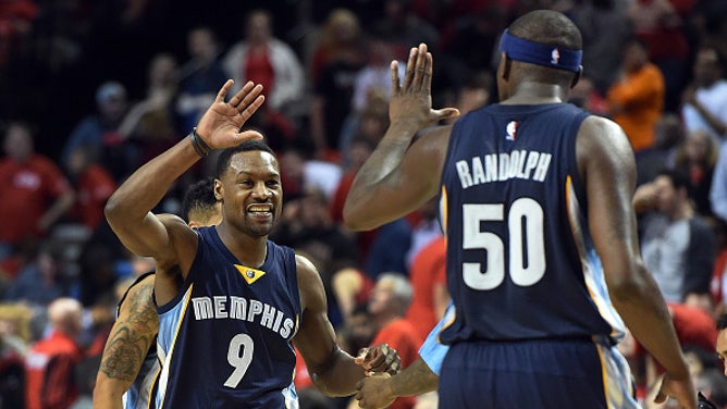 PORTLAND, OR - APRIL 25: Tony Allen #9 of the Memphis Grizzlies clebrates with Zach Randolph #50 of the Memphis Grizzlies during the fourth quarter in Game Three of the Western Conference quarterfinals against the Portland Trail Blazers during the 2015 NBA Playoffs at the Moda Center on April 25, 2015 in Portland, Oregon. (Photo by Steve Dykes/Getty Images)