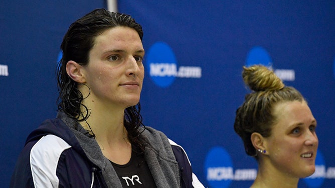 ATLANTA - Lia Thomas looks on from the podium after finishing fifth in the 200 Yard Freestyle during the 2022 NCAA Division I Women's Swimming & Diving Championship at the McAuley Aquatic Center on the campus of the Georgia Institute of Technology on March 18, 2022. (Photo by Mike Comer/NCAA Photos via Getty Images)