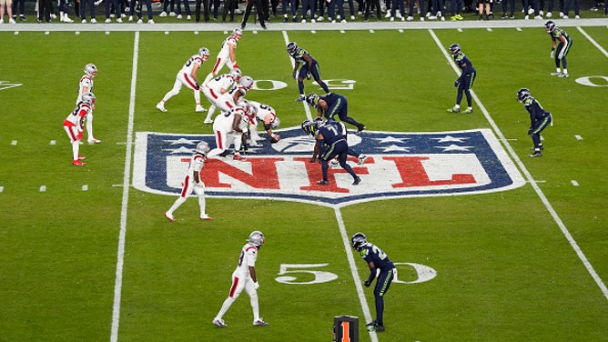 SANTA CLARA, CALIFORNIA - FEBRUARY 08: The New England Patriots offense lines up against the Seattle Seahawks defense during the fourth quarter in Super Bowl LX at Levi's Stadium on February 08, 2026 in Santa Clara, California. (Photo by Thearon W. Henderson/Getty Images)