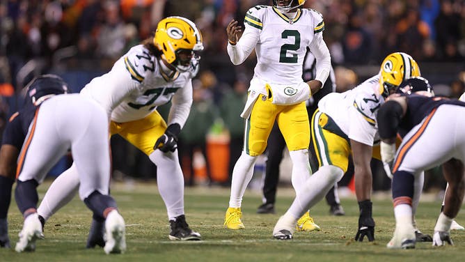 CHICAGO, ILLINOIS - DECEMBER 20: Malik Willis #2 of the Green Bay Packers signals before a snap during the second quarter against the Chicago Bears at Soldier Field on December 20, 2025 in Chicago, Illinois. (Photo by Michael Reaves/Getty Images)