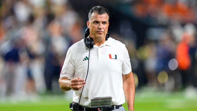 MIAMI GARDENS, FL - AUGUST 31: Miami Hurricanes head coach Mario Cristobal stands on the field during the college football game against the Notre Dame Fighting Irish on August 31, 2025 at the Hard Rock Stadium in Miami Gardens, FL. (Photo by Doug Murray/Icon Sportswire via Getty Images)