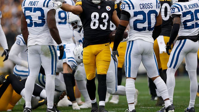 PITTSBURGH, PA - NOVEMBER 02: Pittsburgh Steelers tight end Connor Heyward (83) celebrates his first down during an NFL game between the Indianapolis Colts and the Pittsburgh Steelers on November 02, 2025 at Acrisure Stadium in Pittsburgh, PA. (Photo by Jeffrey Brown/Icon Sportswire via Getty Images)