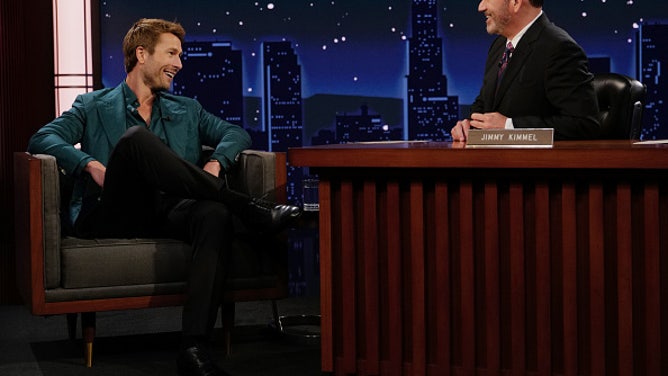 JIMMY KIMMEL LIVE! "Jimmy Kimmel Live!" airs every weeknight at 11:35 p.m. ET and features a diverse lineup of guests that include celebrities, athletes, musical acts, comedians and human interest subjects, along with comedy bits and a house band. The guests for Tuesday, September 23 included Glen Powell ("Chad Powers"), and musical guest Sarah McLachlan. (Disney/Randy Holmes) GLEN POWELL, JIMMY KIMMEL (Photo by Randy Holmes/Disney via Getty Images)