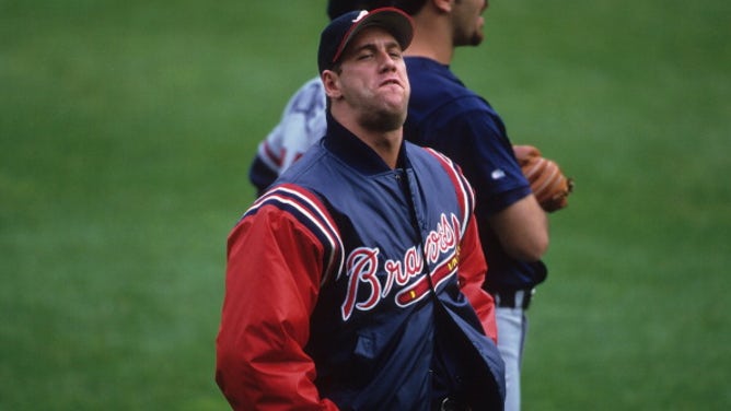 Baseball: NLCS Playoffs: Atlanta Braves John Rocker (49) upset during game vs New York Mets at Shea Stadium. Game 5. Flushing, NY 10/17/1999 CREDIT: Al Tielemans (Photo by Al Tielemans /Sports Illustrated via Getty Images) (Set Number: X58920 TK5 R3 F20 )