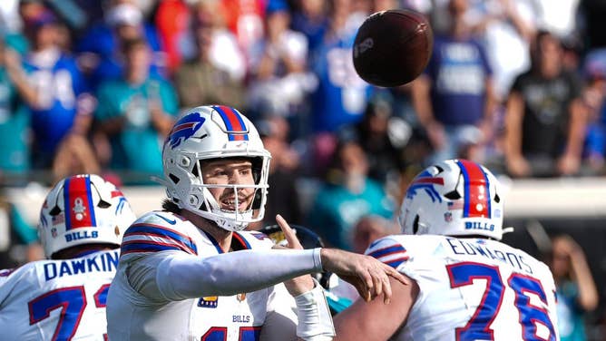 Buffalo Bills quarterback Josh Allen (17) passes during the thrid quarter in an NFL football AFC Wild Card playoff matchup, Sunday, Jan. 11, 2026, in Jacksonville, Fla. Bills lead 10-7 at the half over the Jaguars. The Bills defeated the Jaguars 27-24. [Doug Engle/Florida Times-Union]