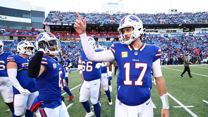 ORCHARD PARK, NEW YORK - NOVEMBER 2: Josh Allen #17 of the Buffalo Bills warms up prior to the game against the Kansas City Chiefs at Highmark Stadium on November 2, 2025 in Orchard Park, New York. (Photo by Kevin Sabitus/Getty Images)