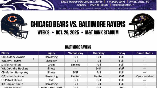 You may know the general facts by now: On Friday, the Ravens released their injury report that includes status for the upcoming game. And quarterback Lamar Jackson, who missed the previous two starts, was listed as a full practice participant for the day and questionable for Sunday's game against the Chicago Bears.