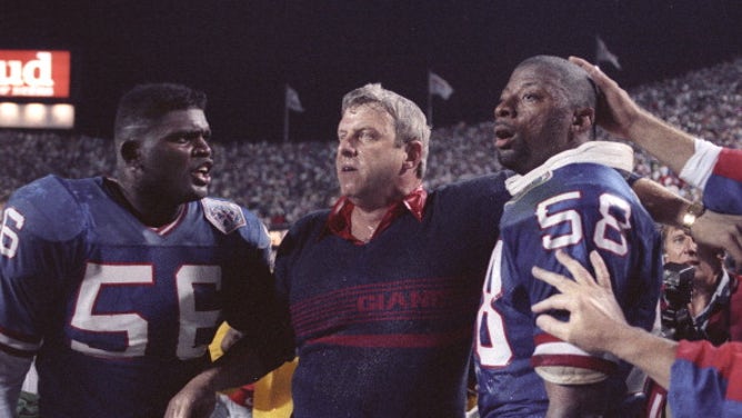 BILL PARCELLS , LAWRENCE TAYLOR, CARL BANKS. (Photo by Rich Pilling/Sporting News via Getty Images via Getty Images)