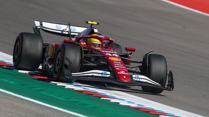 Ferrari's Lewis Hamilton held on to P4 after a final lap scare that almost saw him get overtaken by McLaren's Oscar Piastri, despite starting the lap with a five-second lead. (Photo by David Buono/Icon Sportswire via Getty Images)