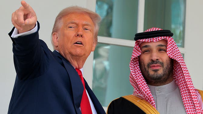President Donald Trump gives former Crown Prince and Prime Minister Mohammed bin Salman of Saudi Arabia a tour of the White House on November 18, 2025. (Photo by Chip Somodevilla/Getty Images)