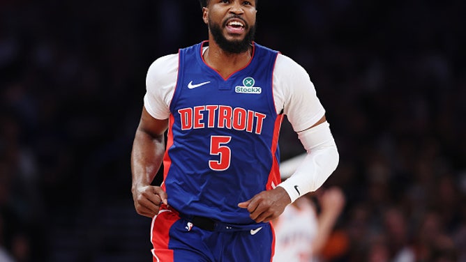 NEW YORK, NEW YORK - APRIL 29: Malik Beasley #5 of the Detroit Pistons in action in Game Five of the Eastern Conference First Round NBA Playoffs against the New York Knicks at Madison Square Garden on April 29, 2025 in New York City. (Photo by Sarah Stier/Getty Images)