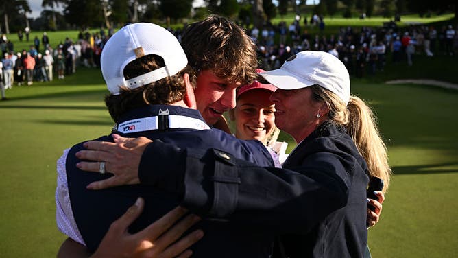 Mason Howell celebrates his U.S. Amateur victory with his parents at Olympic Club. (Photo by Thien-An Truong/Getty Images)