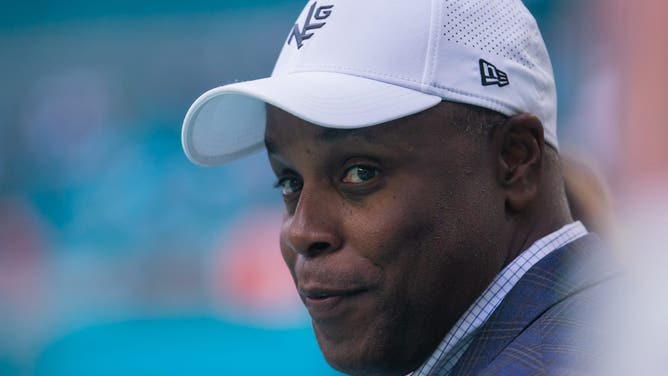 Miami Dolphins General Manager Chris Grier is seen on the sidelines prior to the start of the football game between the New York Jets and host Miami Dolphins at Hard Rock Stadium on Sunday, January 8, 2023, in Miami Gardens, FL.