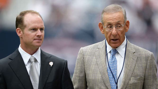 Miami Dolphins general manager Jeff Ireland (left) and chairman Stephen Ross attend the game against the Houston Texans at Reliant Stadium. Photo: Kirby Lee/Image of Sport-USA TODAY Sports