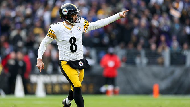 BALTIMORE, MARYLAND - DECEMBER 07: Aaron Rodgers #8 of the Pittsburgh Steelers celebrates a third quarter touchdown against the Baltimore Ravens at M&T Bank Stadium on December 07, 2025 in Baltimore, Maryland. (Photo by Patrick Smith/Getty Images)