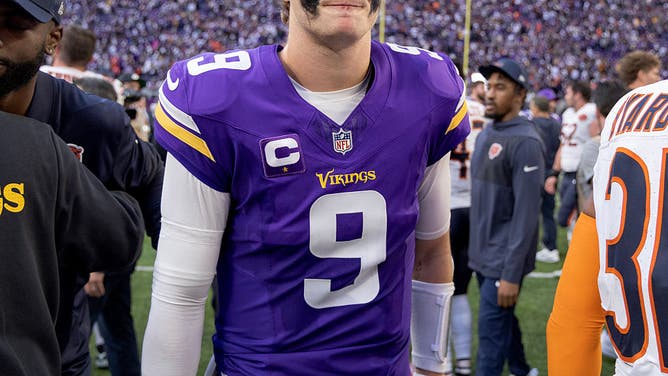 MINNEAPOLIS, MN. - NOVEMBER 2025: Minnesota Vikings quarterback J.J. McCarthy (9) walks off the field at the end of the game at U.S. Bank Stadium in Minneapolis, Minn., on Sunday, November 16, 2025. Minnesota Vikings vs. Chicago Bears. (Photo by Carlos Gonzalez/The Minnesota Star Tribune via Getty Images)