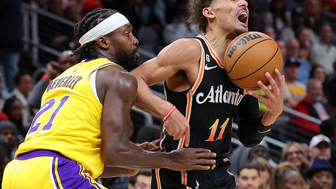 ATLANTA, GEORGIA - DECEMBER 30: Trae Young #11 of the Atlanta Hawks drives against Patrick Beverley #21 of the Los Angeles Lakers during the second quarter at State Farm Arena on December 30, 2022 in Atlanta, Georgia. (Photo by Kevin C. Cox/Getty Images)