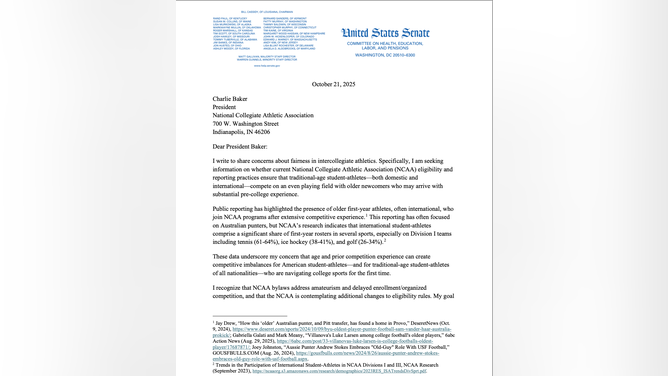 In a letter (below) obtained by OutKick, Senator Cassidy calls for greater transparency to "ensure that traditional-age student-athletes — both domestic and international — compete on an even playing field with older newcomers who may arrive with substantial pre-college experience."