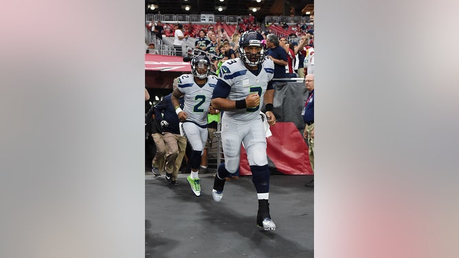 GLENDALE, AZ - OCTOBER 23: Russell Wilson #3 and Trevone Boykin #2 of the Seattle Seahawks take the field prior to a game against the Arizona Cardinals at University of Phoenix Stadium on October 23, 2016 in Glendale, Arizona. (Photo by Norm Hall/Getty Images)