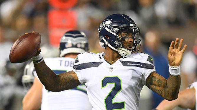 OAKLAND, CA - AUGUST 31: Trevone Boykin #2 of the Seattle Seahawks looks to pass the ball against the Oakland Raiders during the second quarter of their game at the Oakland-Alameda County Coliseum on August 31, 2017 in Oakland, California. (Photo by Thearon W. Henderson/Getty Images)