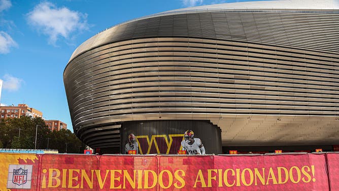 MADRID, SPAIN - NOVEMBER 16: Detail of the Bernabeu with a welcome banner before the National Football League (NFL) 2025 Madrid Game, between the Miami Dolphins and Washington Commanders at Bernabeu stadium on November 16, 2025. (Photo By Irina R. Hipolito/Europa Press via Getty Images)