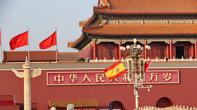 The national flags of China and Spain flutter at Tian'anmen Square on November 11, 2025 in Beijing, China. (Photo by Wang Xin/VCG via Getty Images)