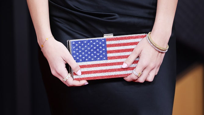 That contrast became immediately clear on the red carpet, where Austin’s American flag purse drew outsized attention from the anti-ICE crowd.
