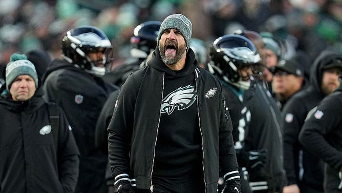 PHILADELPHIA - Head coach Nick Sirianni of the Philadelphia Eagles reacts against the Chicago Bears during the second quarter at Lincoln Financial Field on November 28, 2025. (Photo by Mitchell Leff/Getty Images)