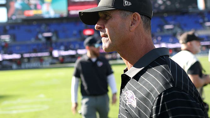 BALTIMORE, MARYLAND - OCTOBER 05: Head coach John Harbaugh of the Baltimore Ravens walks off the field following the Ravens loss to the Houston Texans at M&T Bank Stadium on October 05, 2025 in Baltimore, Maryland. (Photo by Rob Carr/Getty Images)