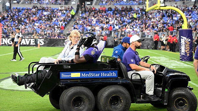 Baltimore's medical staff rushed to the scene and agonized at the goal line. He received an air cast on his leg and was immediately ruled out of the game.