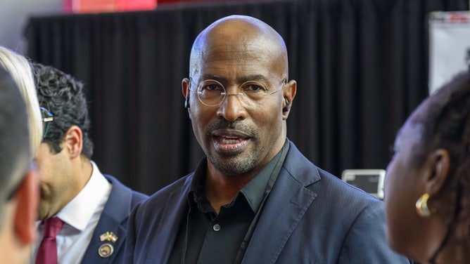 CHICAGO - Political commentator Van Jones speaks with attendees in a hallway on Aug. 21, 2024 at the Democrat National Convention at the United Center. Photo: David Baratz-USA TODAY