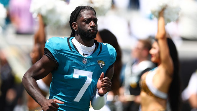 JACKSONVILLE, FLORIDA - SEPTEMBER 7: Brian Thomas Jr. #7 of the Jacksonville Jaguars runs on to the field for player intros prior to an NFL football game against the Carolina Panthers at Everbank Stadium on September 07, 2025 in Jacksonville, Florida. (Photo by Logan Bowles/Getty Images)