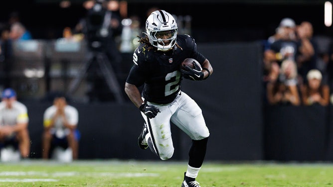 LAS VEGAS, NEVADA - SEPTEMBER 15: Ashton Jeanty #2 of the Las Vegas Raiders carries the ball during an NFL football game against the Los Angeles Chargers at Allegiant Stadium on September 15, 2025 in Las Vegas, Nevada. (Photo by Brooke Sutton/Getty Images)