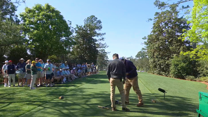 In typical Augusta National fashion, a pair of workers took to the damage done on the second tee just minutes later.