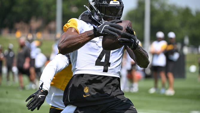 Pittsburgh Steelers Wide Receiver DK Metcalf participates in drills during training camp at Saint Vincent College. Mandatory Credit: Barry Reeger-Imagn Images