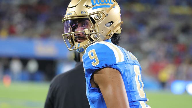PASADENA, CA - SEPTEMBER 12: UCLA Bruins quarterback Nico Iamaleava (9) looks over his shoulder during the college football game between the New Mexico Lobos and the UCLA Bruins on September 12, 2025, at the Rose Bowl in Pasadena, CA. (Photo by Jevone Moore/Icon Sportswire via Getty Images)